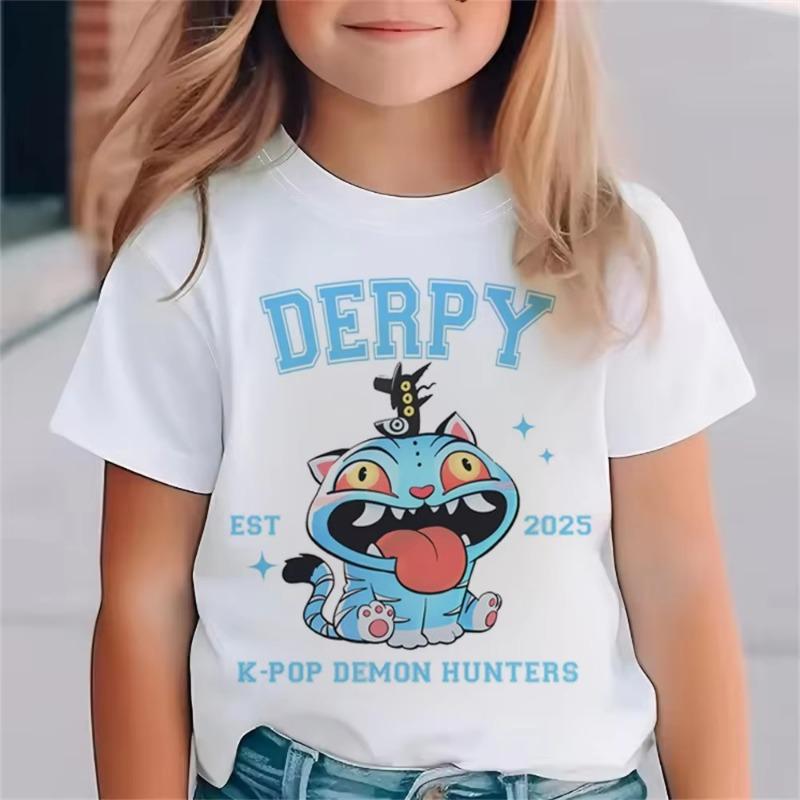 Модная футболка для детей из фильма KPop Охотники на демонов Забавный подарок для фанатов Футболка K-Pop Охотники на демонов Одежда Крутая футболка для девочек Топ