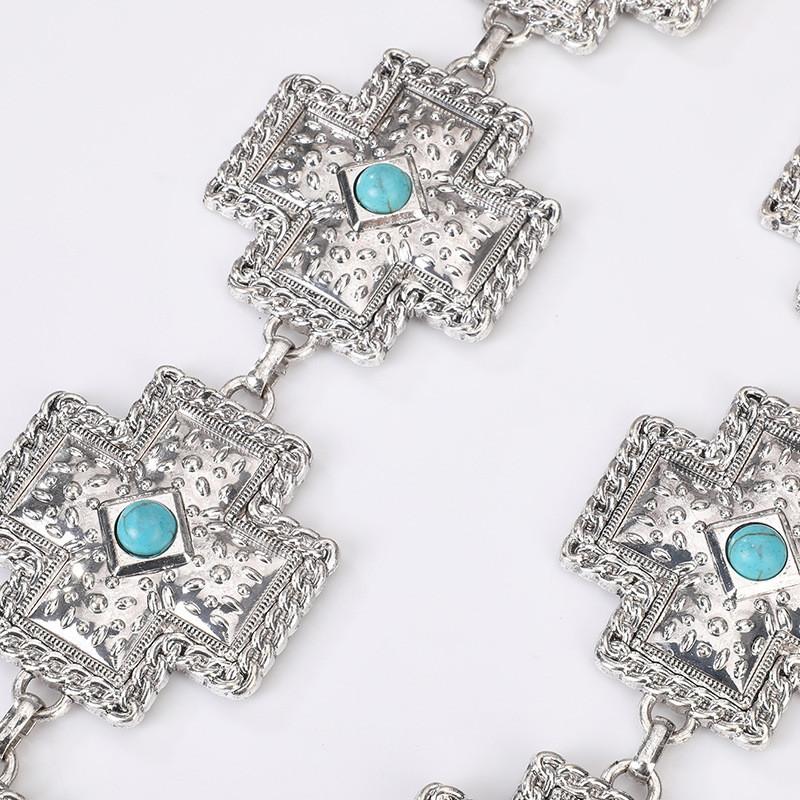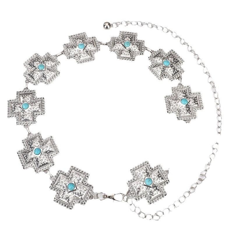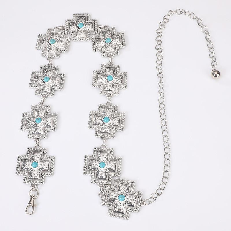 Бирюзовая богемная цепочка на талию с крестом для женщин с металлической и смоляной пряжкой для модного заявления