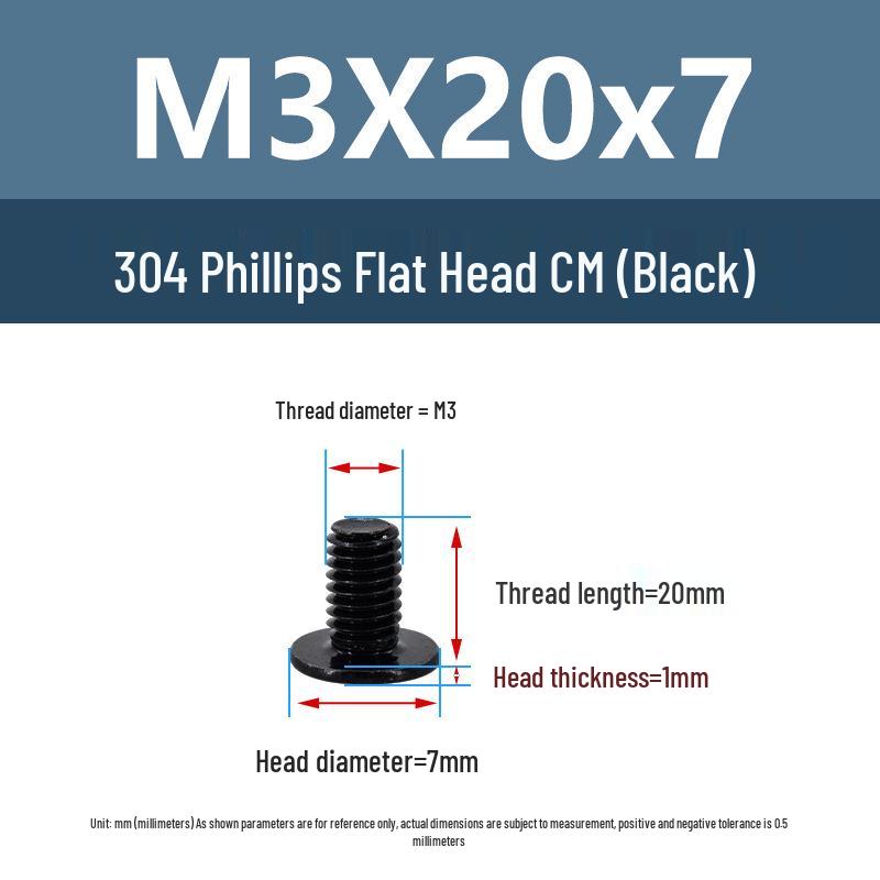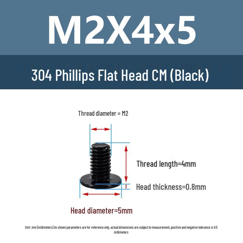 Yigu Black 304 Stainless Steel Flat Head Phillips Machine Screws M2-M6