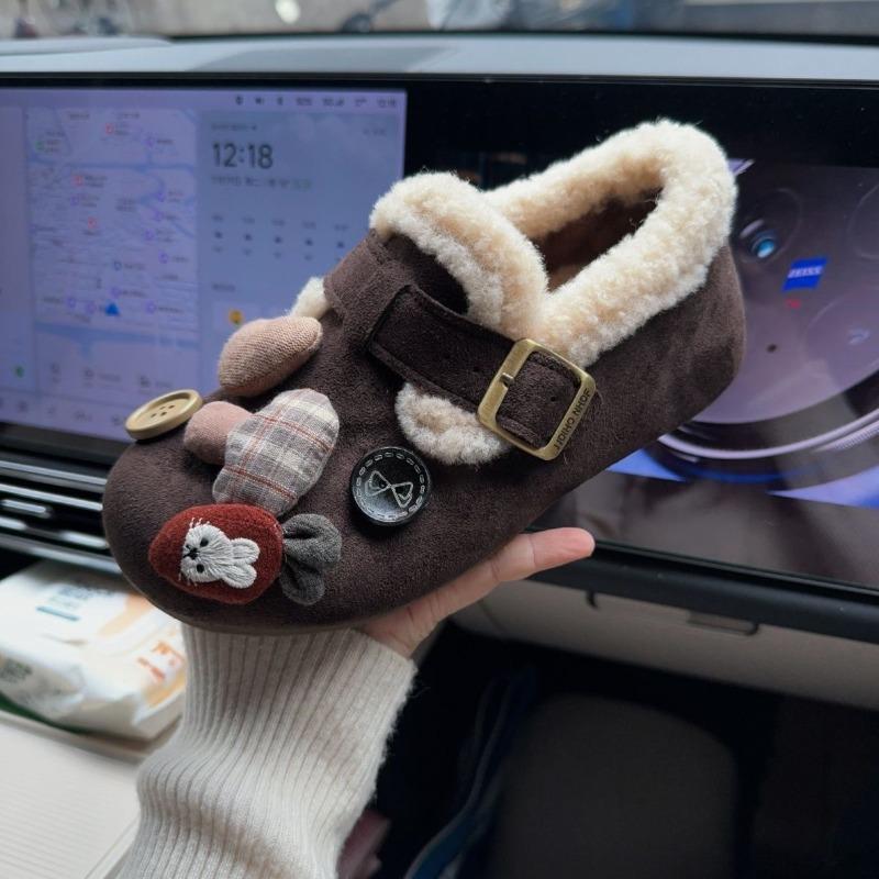 Шарф медведь все включено бархатный женский зимний новый однопедальный пушистый обувь на платформе ретро одинарная обувь