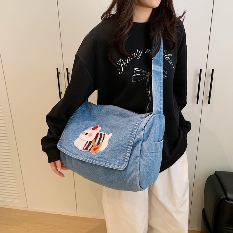 Винтажная сумка через плечо Легкая сумка для поездок Мультяшная джинсовая женская сумка
