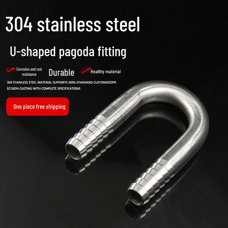 Нержавеющая сталь 304 Пагода Колено 180° Штуцер для шланга для кислородных трубок аквариума (6, 8, 10 мм)