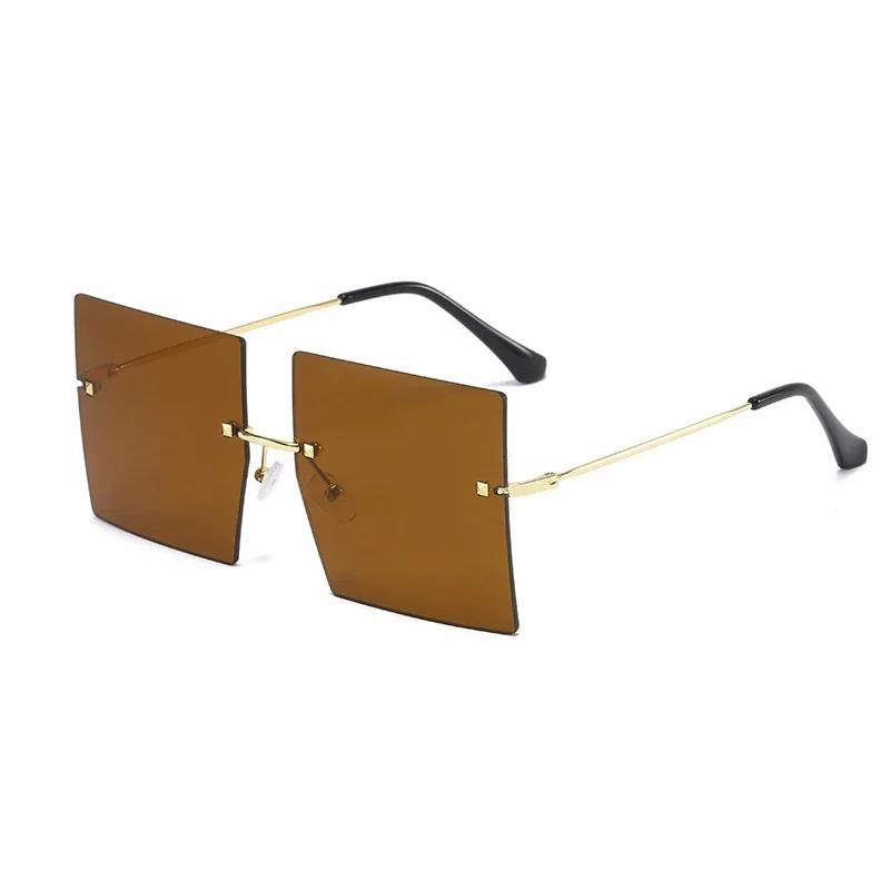 Классические квадратные безободковые солнцезащитные очки Женские Мужские Дизайнерский бренд Солнцезащитные очки Женские Мужские Личность Металлические Зеркальные