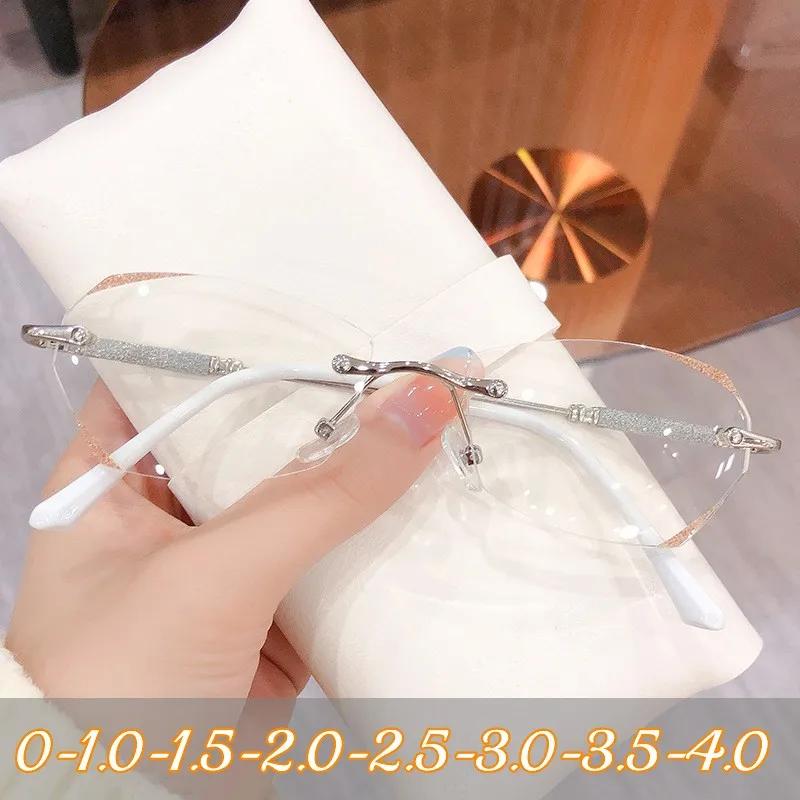 Винтажные Очки для Миопии с Алмазной Граней Женские Мужские Роскошный Дизайн Безободковые Очки Унисекс Новая Мода Очки для Близоруких