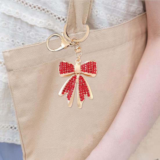 Премиальные материалы: Этот брелок-бантик, изготовленный из сплава, искусственных кристаллов и страз, излучает элегантность и долговечность.. Сверкающие искусственные кристаллы и стразы красиво отражают свет, что делает украшение эффектным аксессуаром для любого случая.