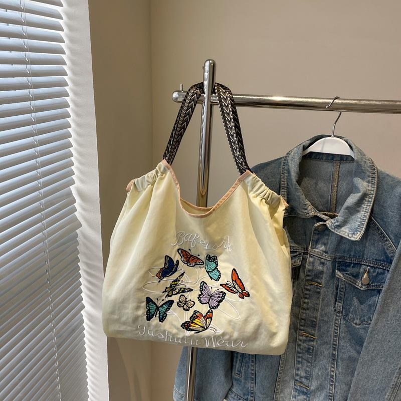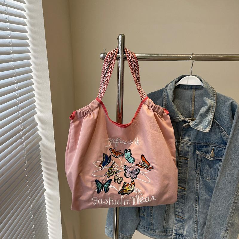Travel bag Embroidery women's bag Shoulder bag Nylon bag Waterproof tote bag Internet celebrity nylon bag Handheld messenger bag