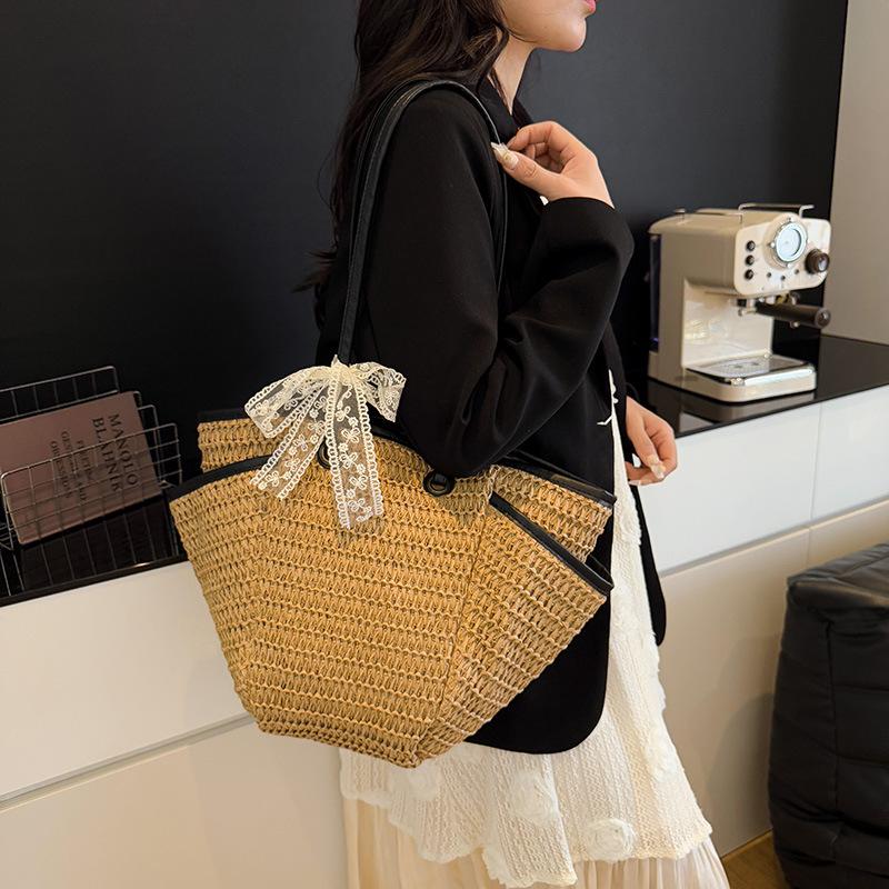 Новая простая модная соломенная сумка большой вместимости 2025 весна, женская сумка с нишевым дизайном через плечо, повседневная сумка-ведро