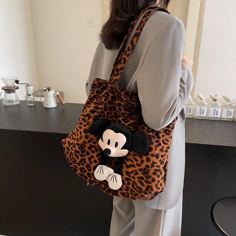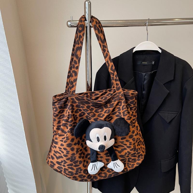 Нишевый дизайн леопардовый принт повседневная модная сумка женская новая сумка-тоут с куклой Микки большая вместимость легкая сумка для покупок