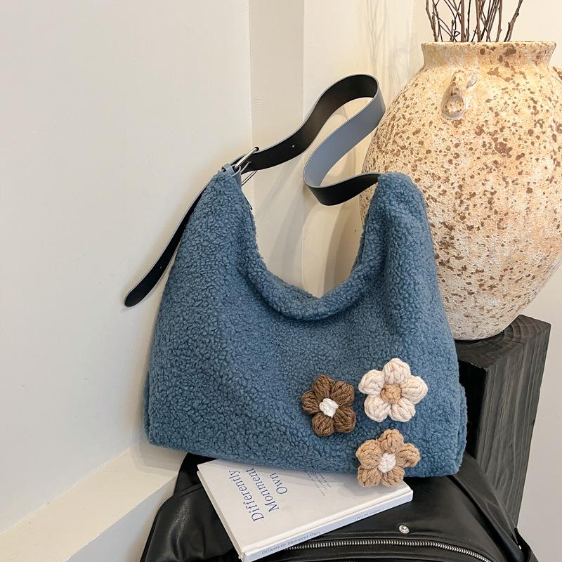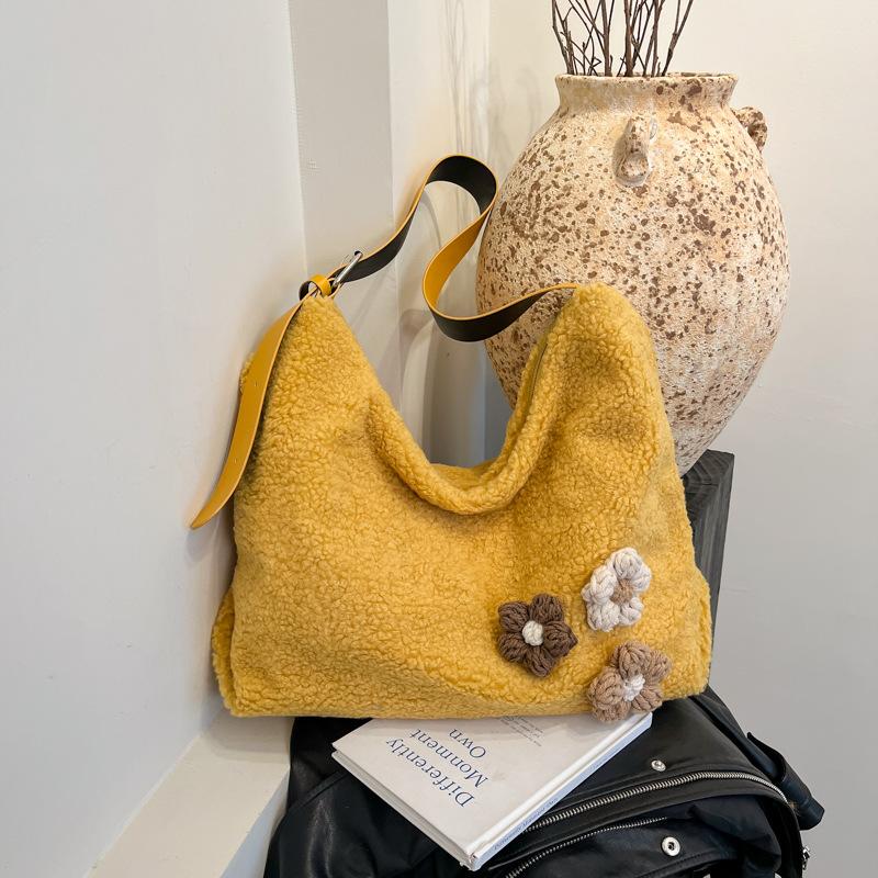 Осень-зима 2025 новая шерстяная сумка-мессенджер большой вместимости женская универсальная японская однотонная сумка на плечо нишевая сумка-тоут