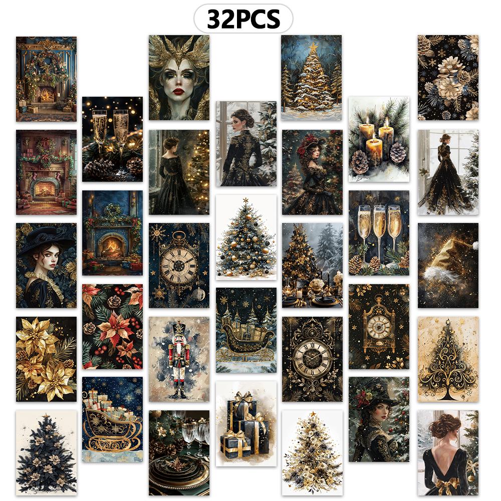 32 шт. Винтажные черные и золотые рождественские открытки, Хэллоуин/Новый год/День рождения, Подарки, Коллекционные, Готовые к отправке