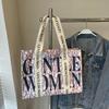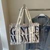 Холщовая сумка-тоут с алфавитом большой вместимости, женская, 2025, новая модная нишевая сумка через плечо, студенческая сумка для занятий, сумка для поездок на работу