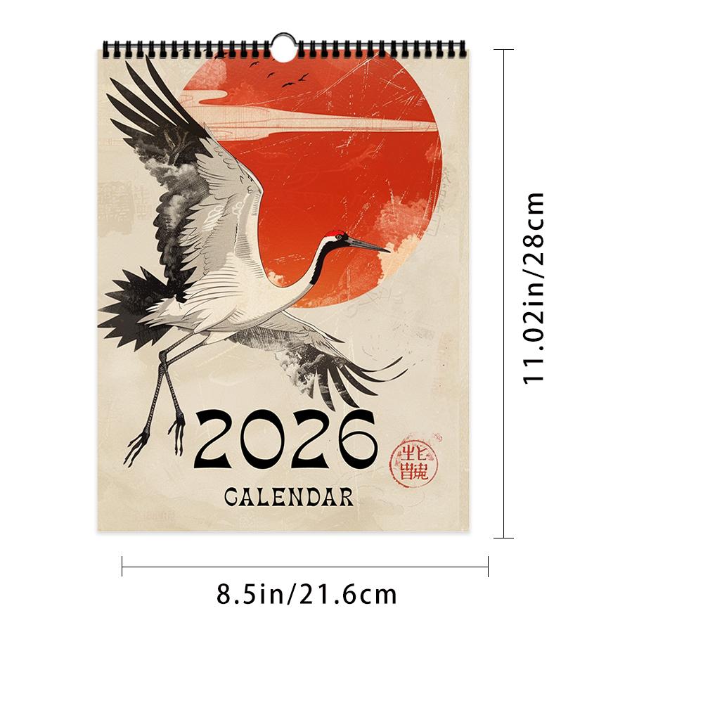 1 шт., Ретро настенный календарь в японском стиле на 2026 год, Серия Укиё-э, 12 разных дизайнов, Настенный календарь, Подарок на день рождения, Рождество