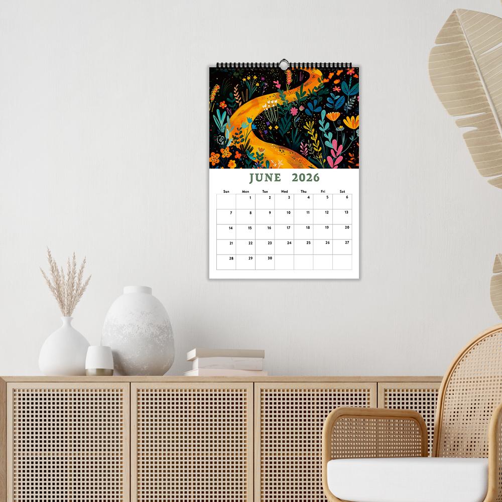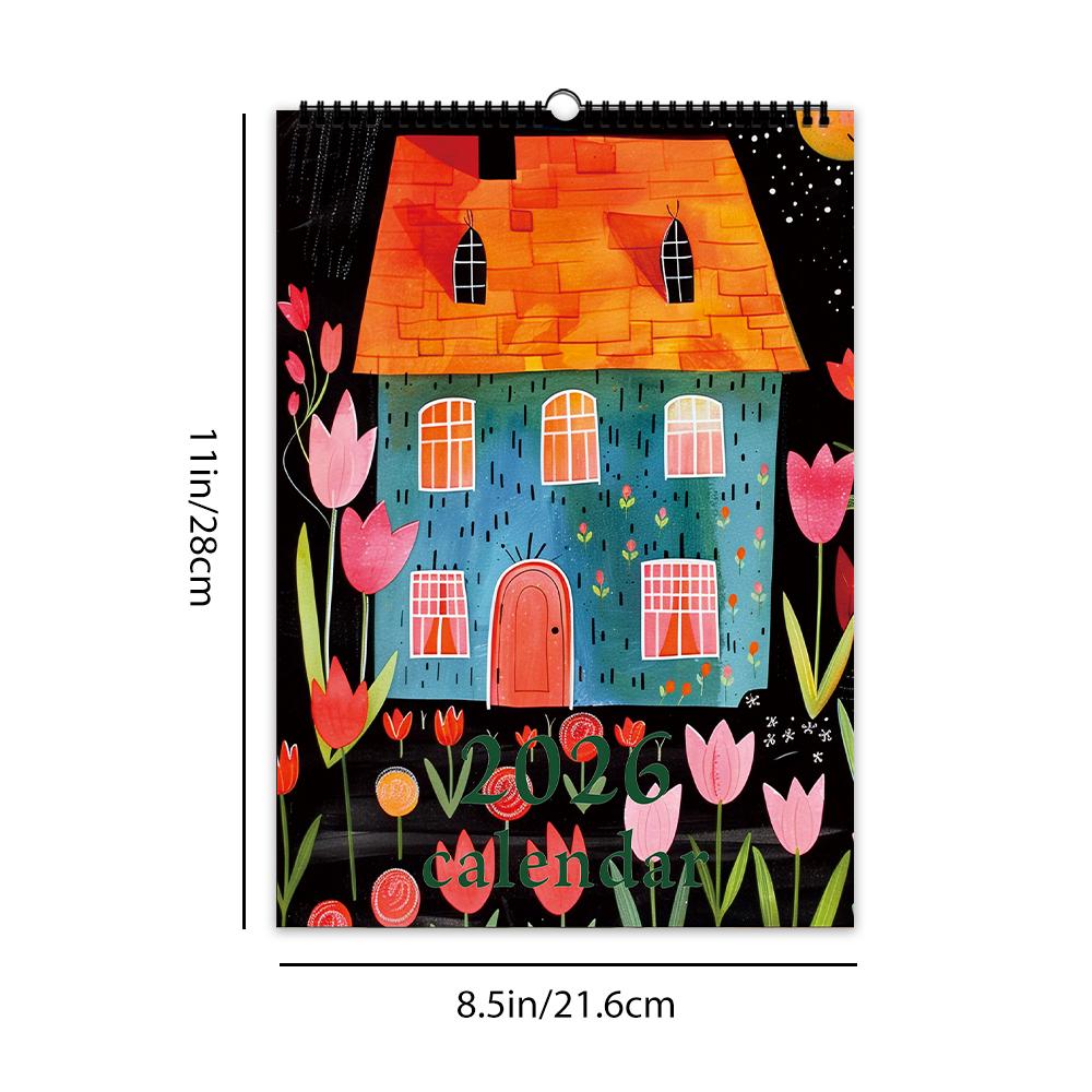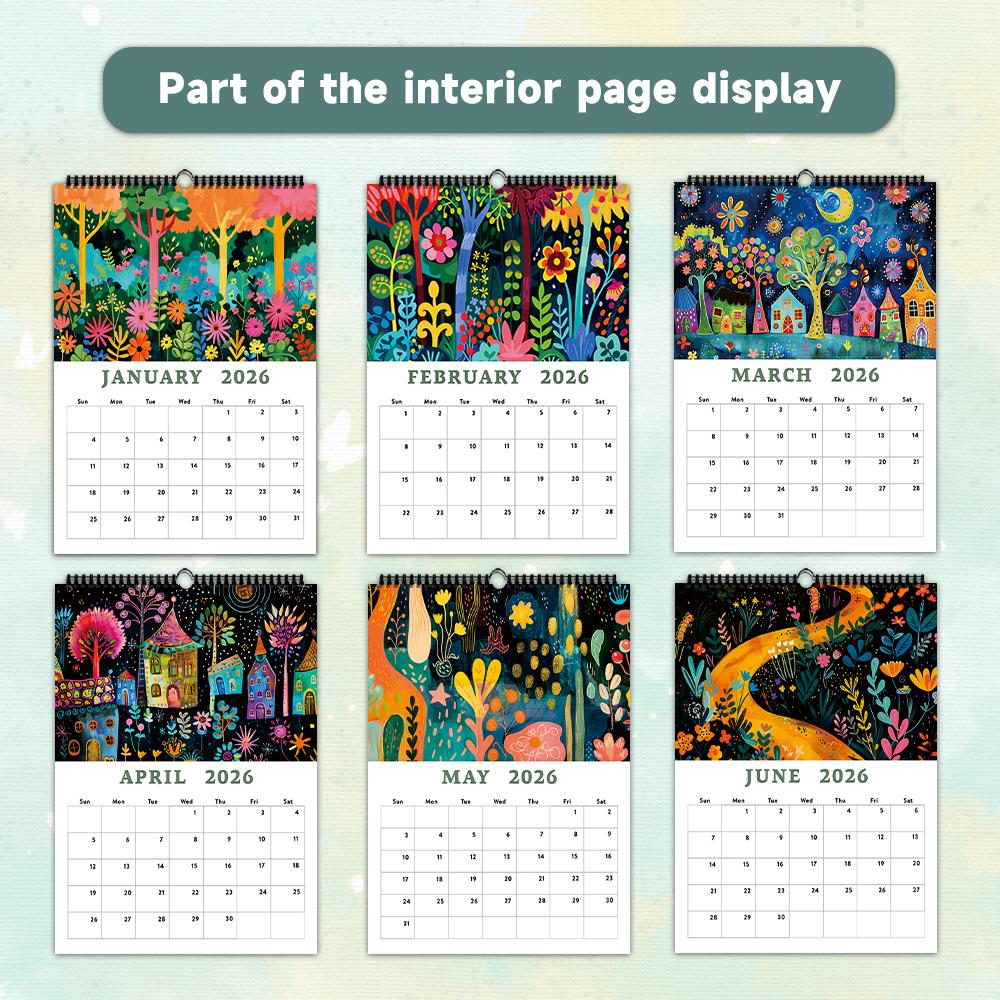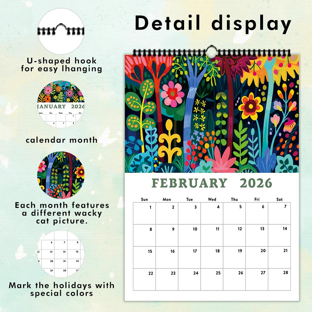 1 шт. Настенный календарь 2026, Дизайн растений в народном стиле, Красочные цветочные узоры, Планировщик на 12 месяцев, Идеальный подарок на дни рождения и праздники