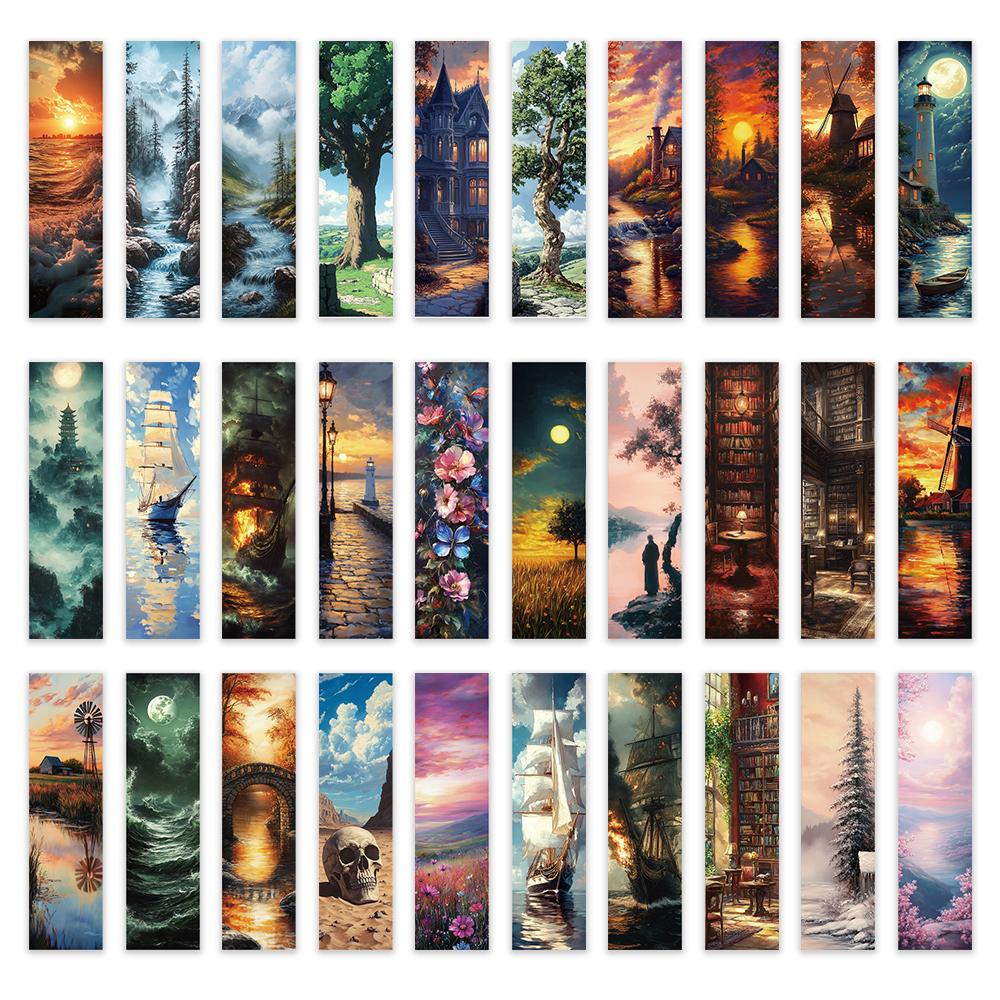 32 шт., Закладка с ретро-пейзажем, Сезон возвращения в школу, Рождество, Хэллоуин, Подходит для учителей, читателей и в качестве подарков на день рождения.
