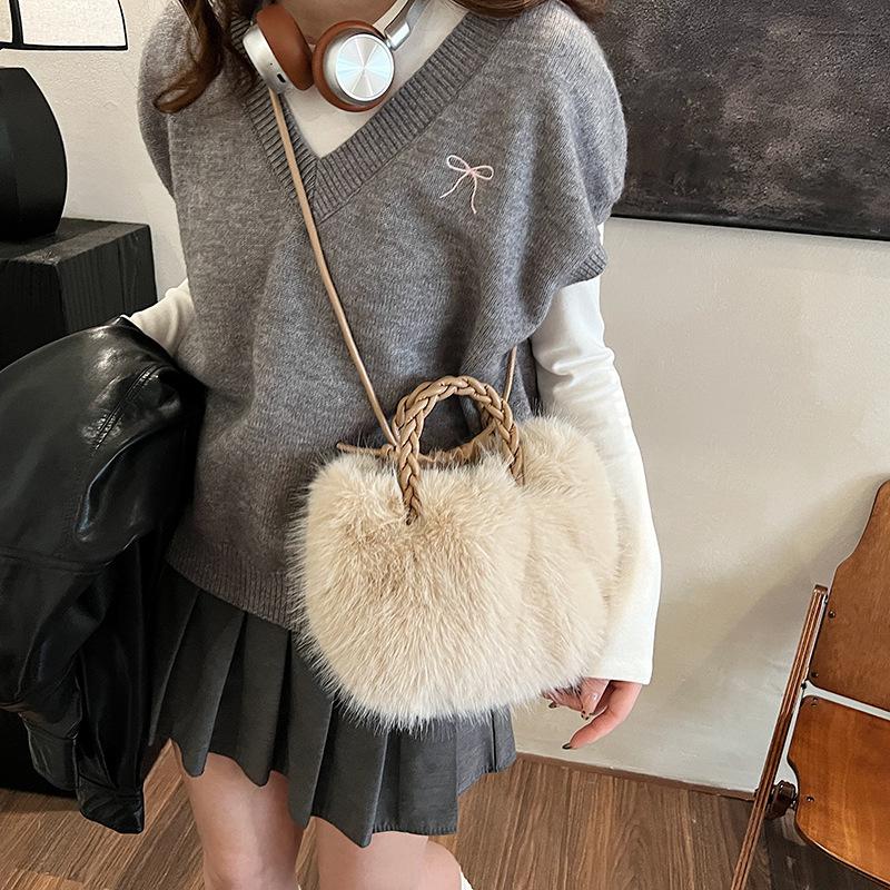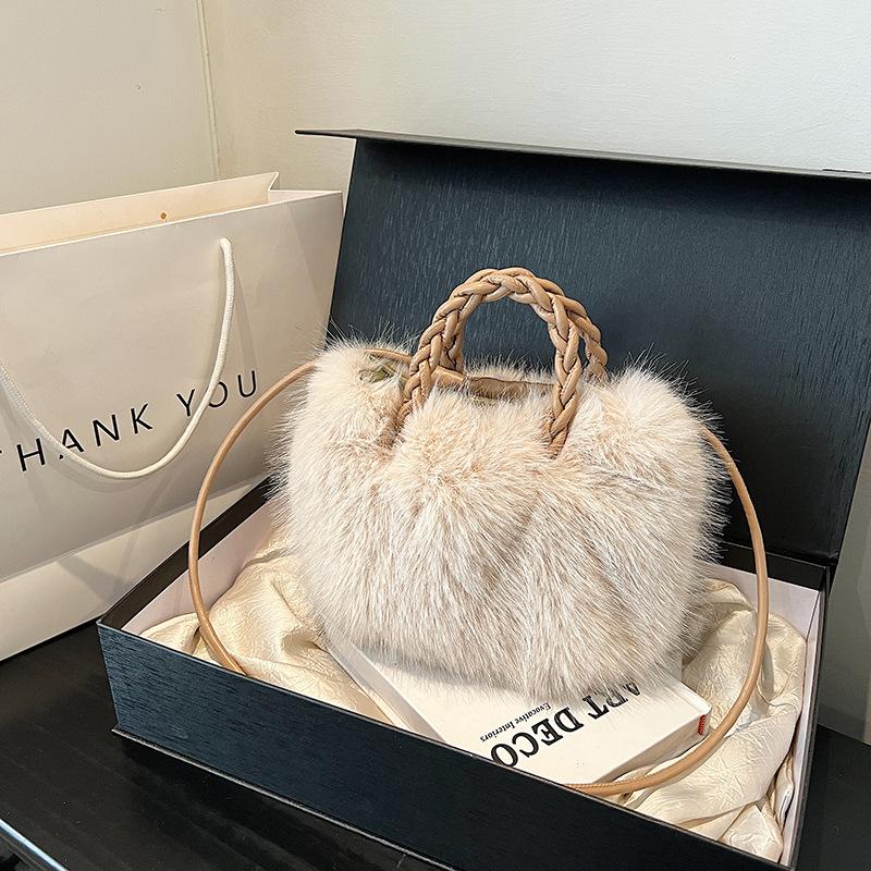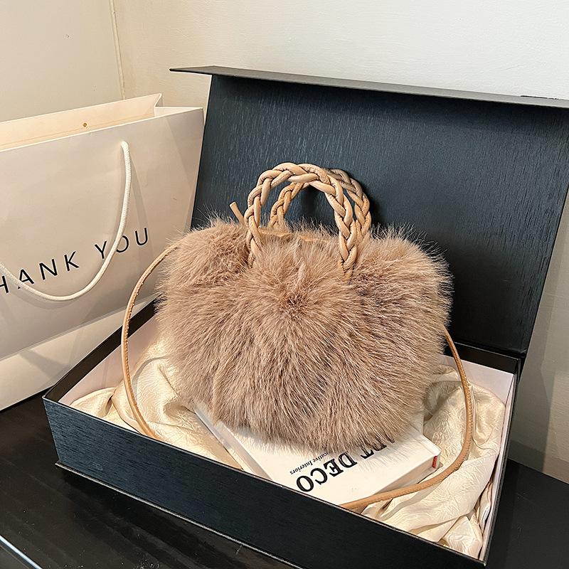 Плюшевая сумка женская осенне-зимняя для отдыха 2025 новая нишевая дизайнерская на плечо, сумка-мессенджер, портативная пушистая сумка-ведро
