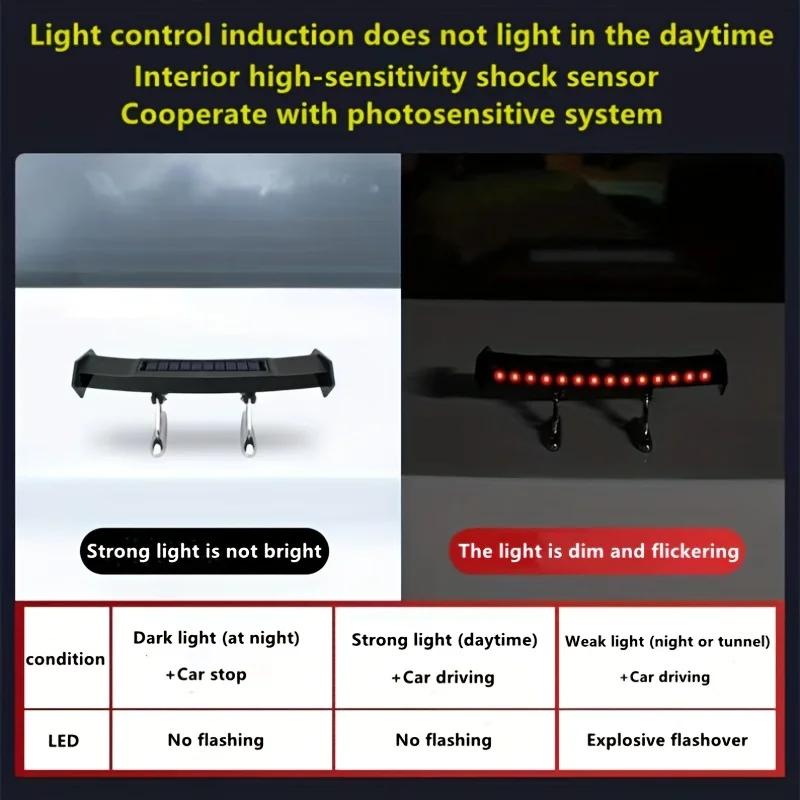 1 шт., мини-солнечный задний фонарь, универсальный светодиодный задний спойлер для автомобиля, мигающее предупреждение, водонепроницаемое крыло с умным датчиком, модифицированные аксессуары