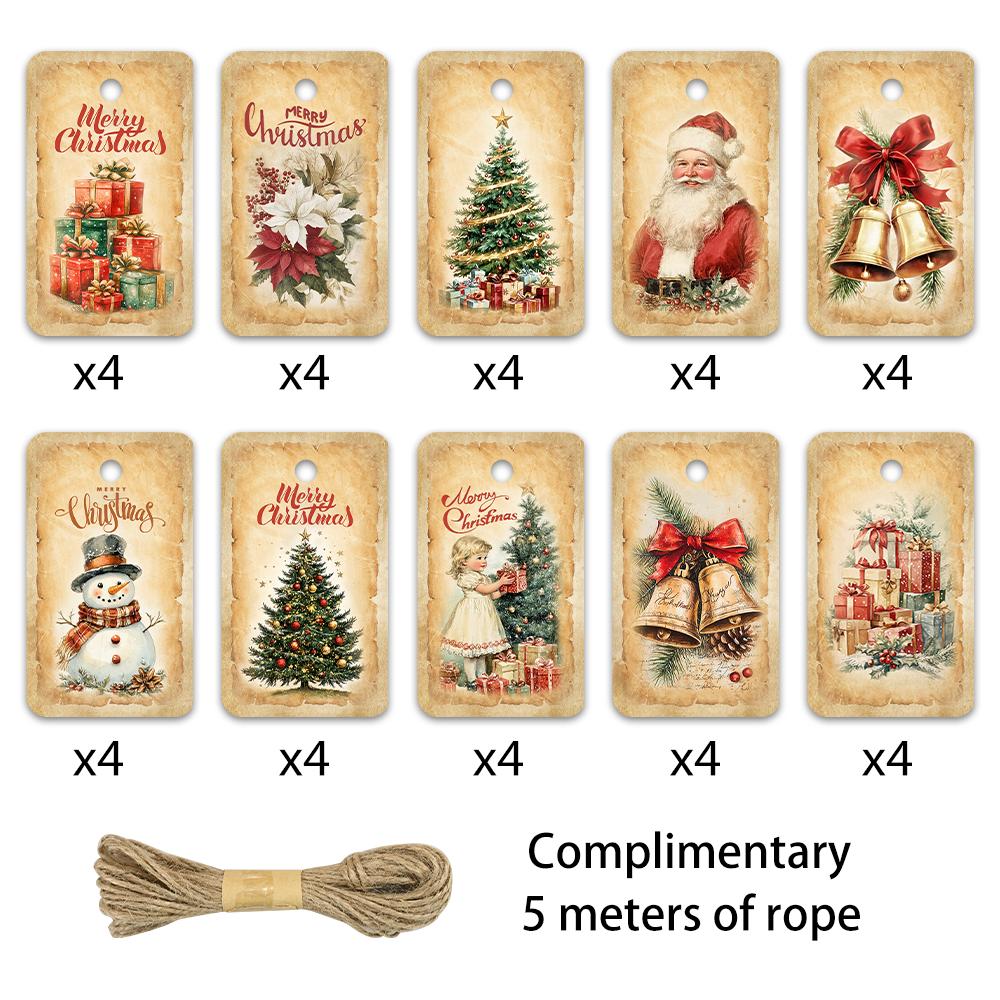 40pcs, Christmas tags, gift labels, party decorations, DIY, packaging embellishments, greeting cards, party cards, jute twine