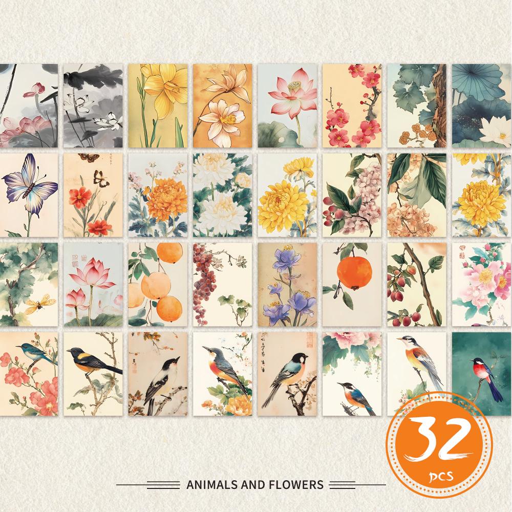 32 шт., старинные цветочные и ботанические открытки, наклейки на стену, почтовые карточки, поздравительные открытки, открытки для DIY, сувенирные открытки,