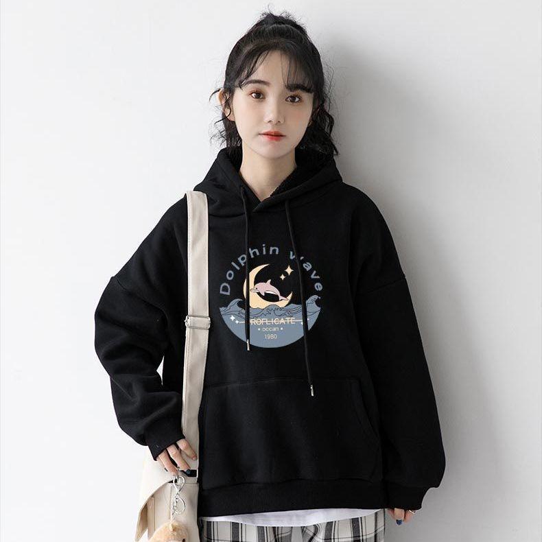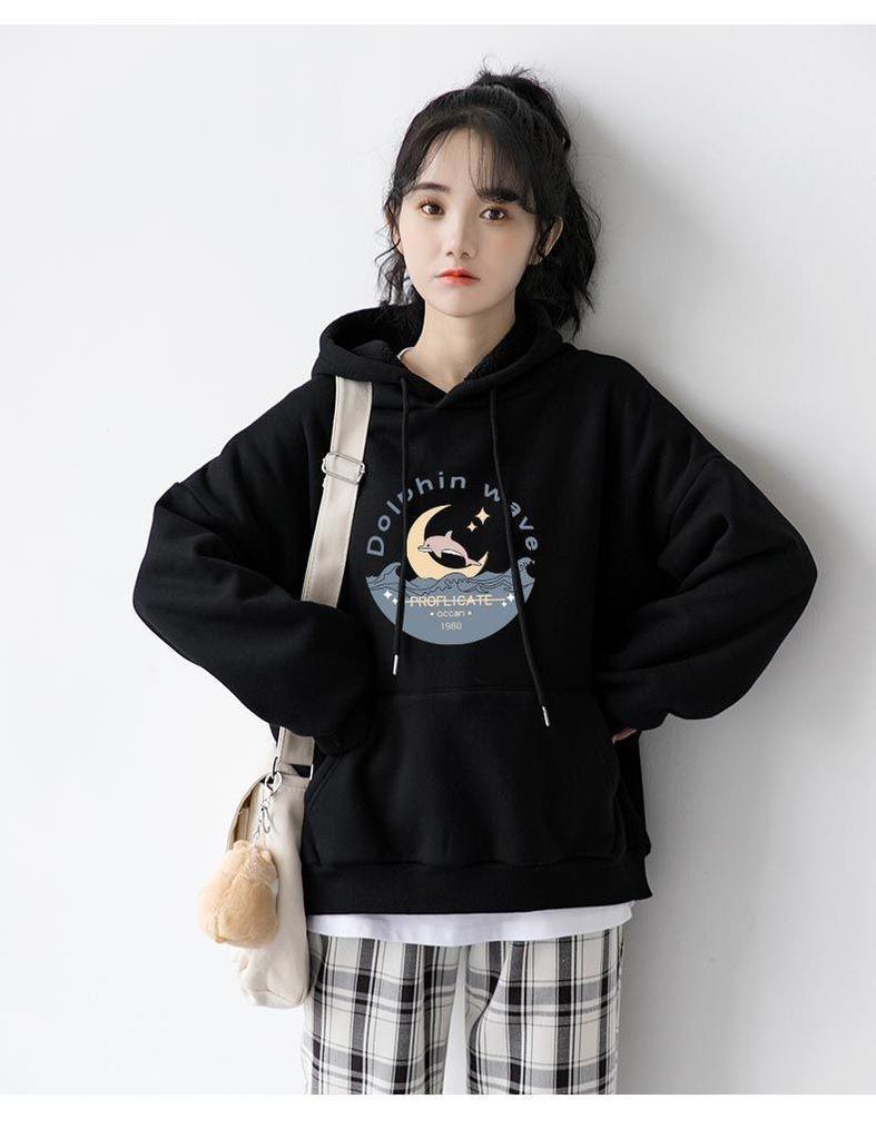 Осенне-зимнее плюшевое худи для женщин, свободное, толстое, с принтом луны, пуловер на каждый день, худи с капюшоном