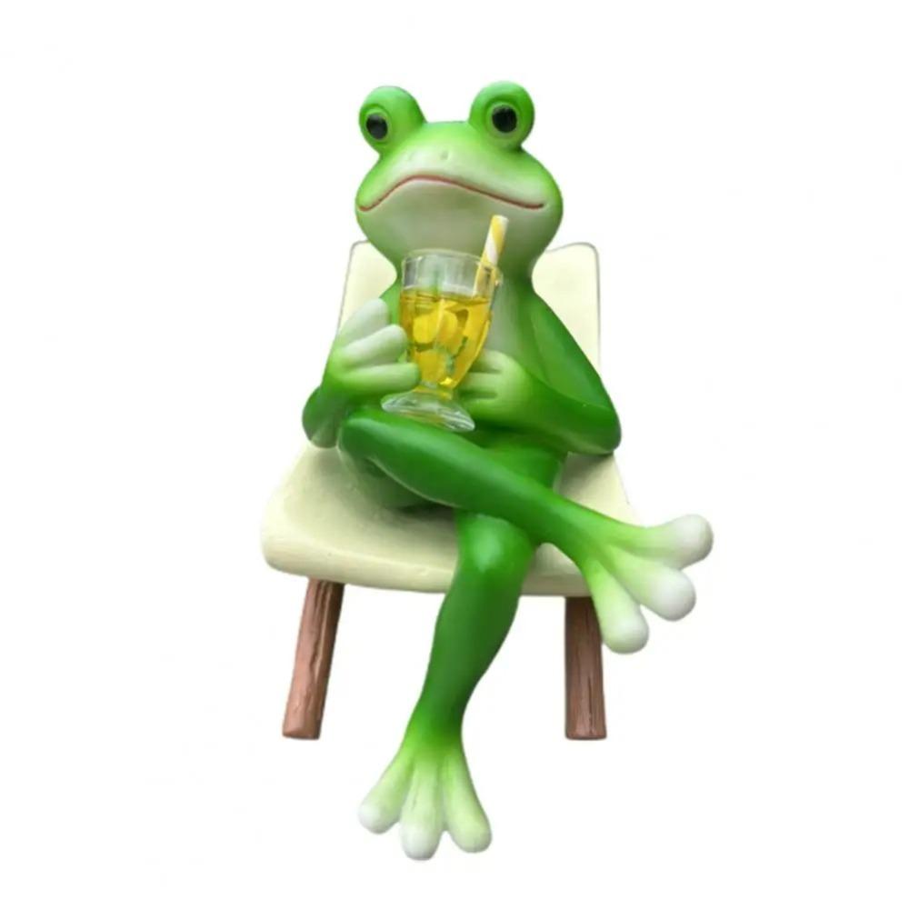 Resin Frog Sit Chair Sculpture Cute Frog Desktop Figurine Rocking Chair Frog Statue Balcony Patio