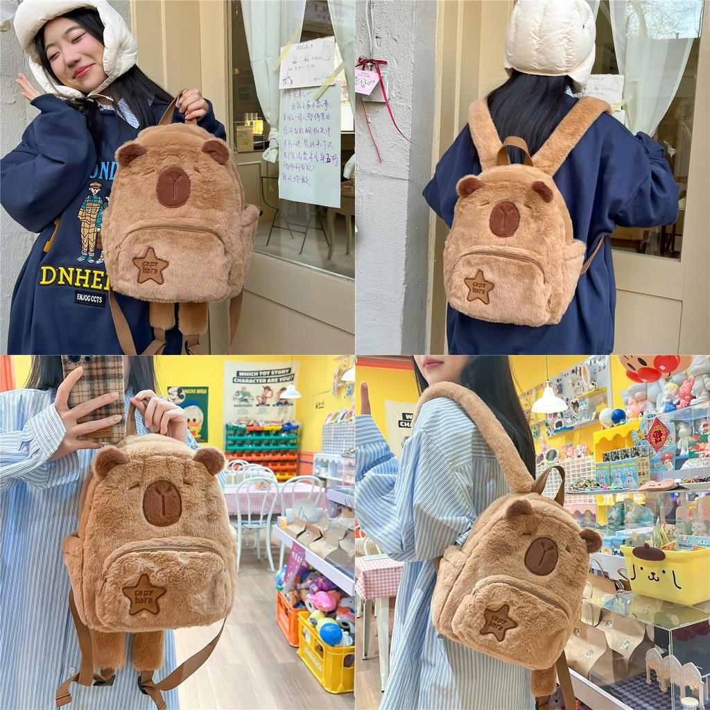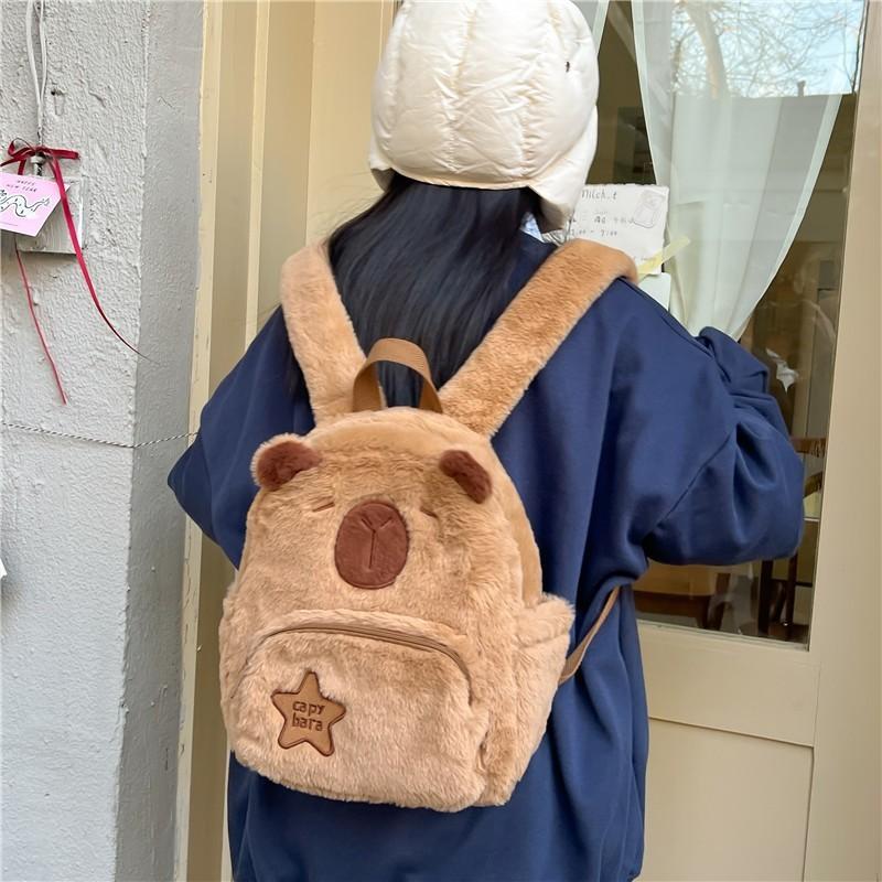 Плюшевый рюкзак Капибара Звезда, мультяшная сумка с регулируемыми плечевыми ремнями