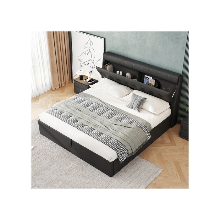 Lit - 160x200 - Rangement caché - Cadre hydraulique - Design moderne