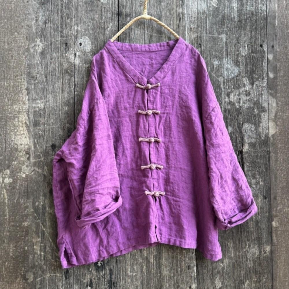 Johnature Женские винтажные рубашки однотонные стойка длинный рукав блузки осень пуговица свободный китайский стиль топ — купить товар онлайн с бесплатной доставкой по всему миру!