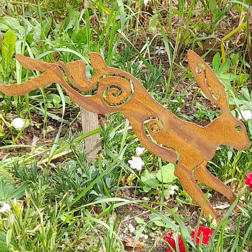 1 шт. Железный кролик, садовое украшение, вставка в землю, прыгающий дикий кролик и спокойный кролик, садовое украшение, для улицы, для газона, украшение двора