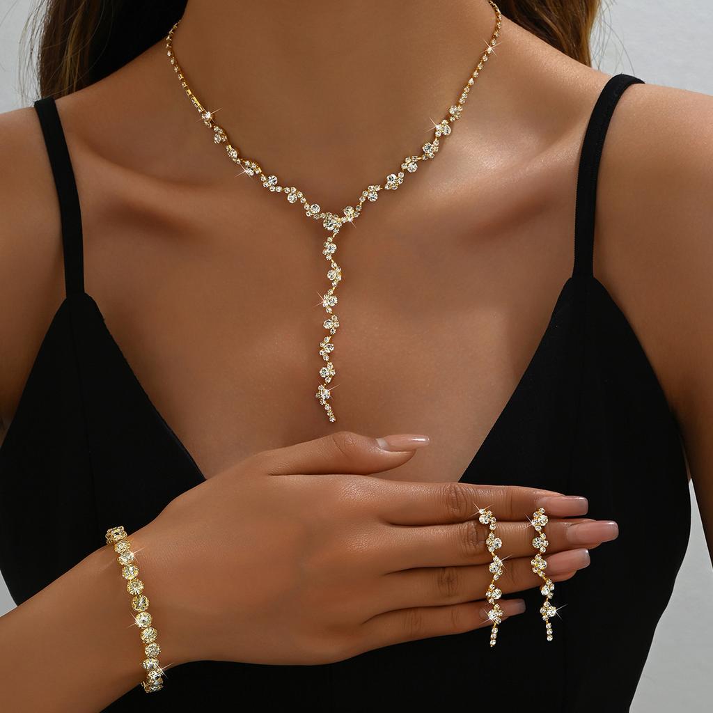 Женский подарочный набор украшений из цепочки-коготь с бриллиантами, ожерелье из трех частей, серьги, браслет, вечернее платье, аксессуары