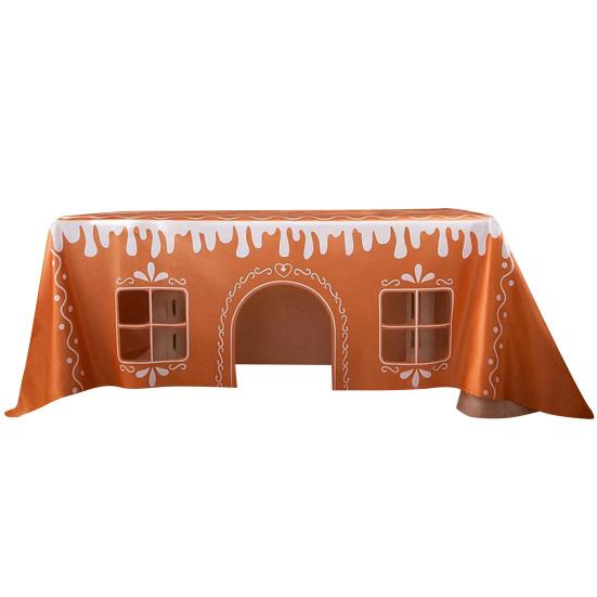 Трехмерная структурная форма: Эта скатерть с очаровательным дизайном пряничного домика с арочной дверью и оконными проемами добавляет причудливый штрих любой обстановке.. Идеально подходит для детских праздников или семейных посиделок, вызывает визуальный интерес и способствует интерактивным моментам.