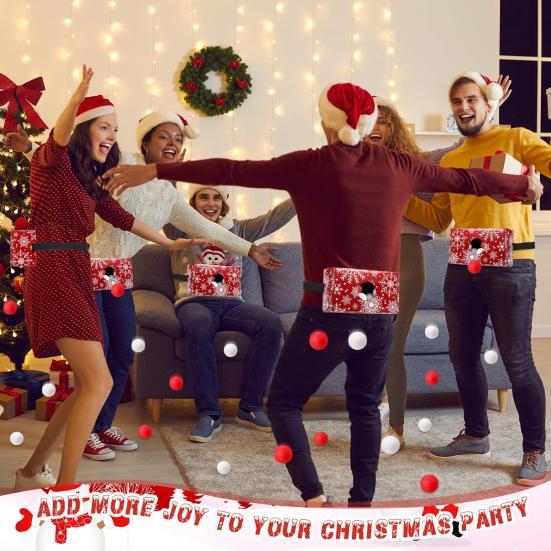 Designed with a festive red box adorned with white snowflakes, it enhances the Christmas atmosphere. Easy to play, simply hang the box, fill it with balls, and race to shake them out first.