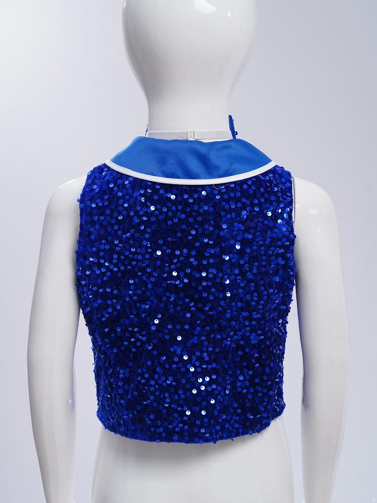 Унисекс Детский танцевальный жилет с блестящими пайетками, бархатными пуговицами, неровным подолом с галстуком-бабочкой, костюм