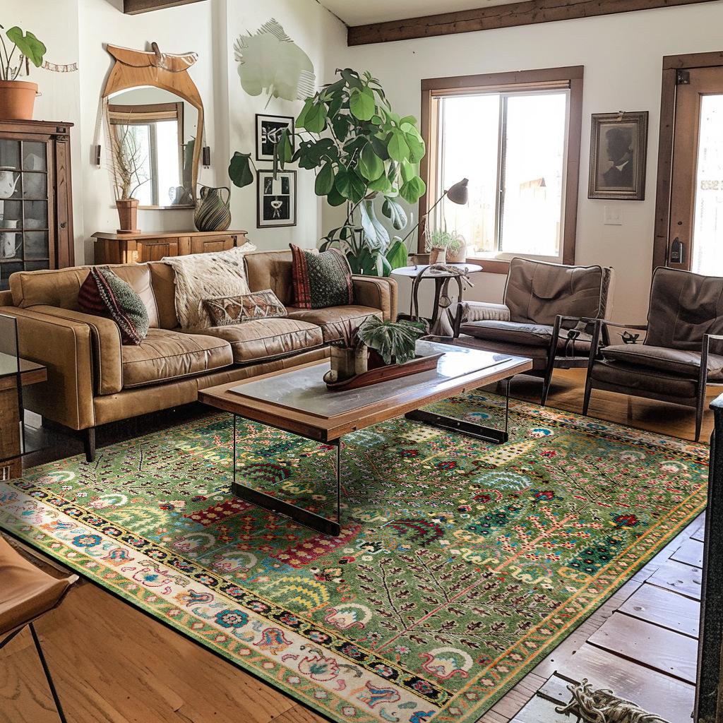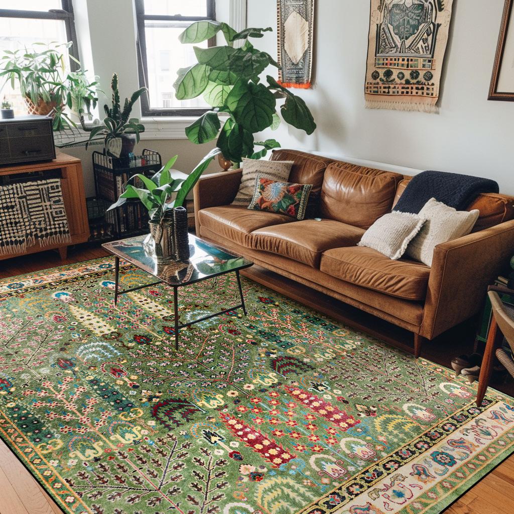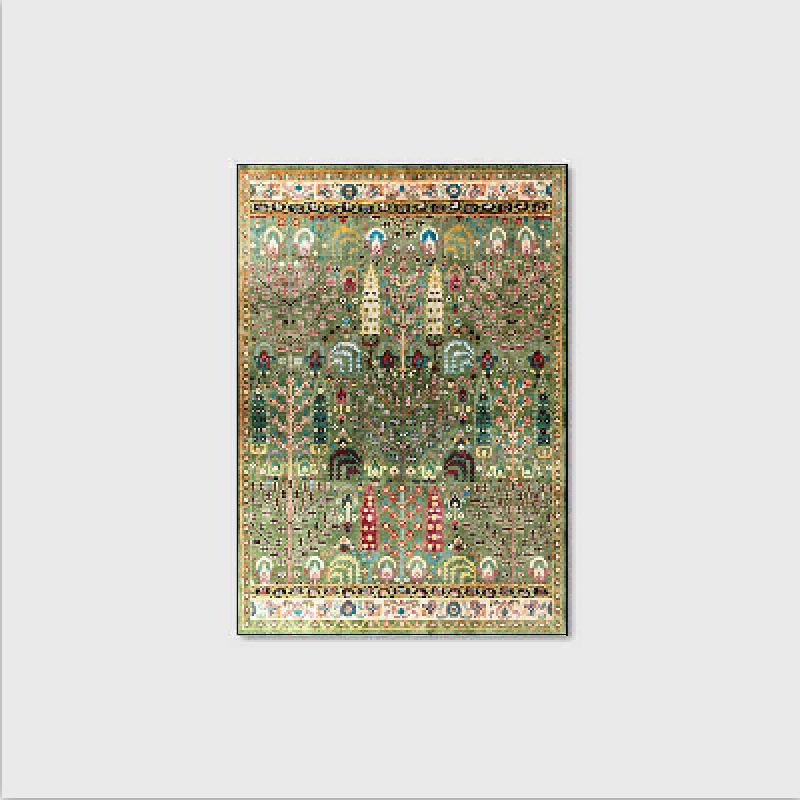 Персидский ковер, Зеленый, Древо жизни, Кристаллический вельвет, 150x200 см