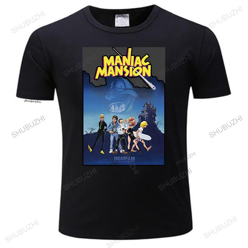 Men Cotton o-neck T Shirt Summer Tshirt MANIAC MANSION Lucasfilm Games 1987 retrogaming monkey island unisex tee-shirt