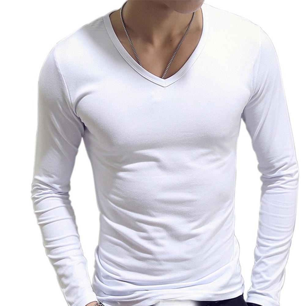 Мужские модные повседневные футболки с длинным рукавом облегающего кроя, легкие однотонные футболки из хлопка с O/V-образным вырезом, блузка