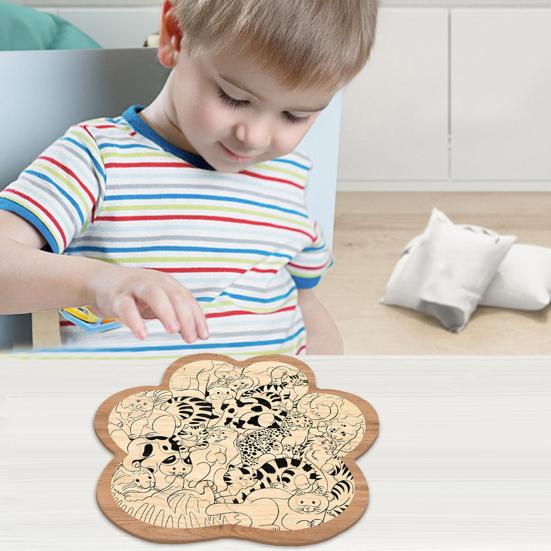 Пазл в форме кошачьей лапки уникально гравирован различными игривыми кошачьими узорами, пробуждающими воображение и привлекающими внимание детей.. Идеально для раннего образования или досуга, развивает концентрацию, пространственное восприятие и логическое мышление.