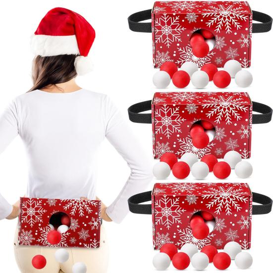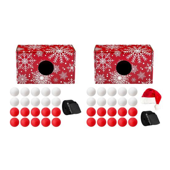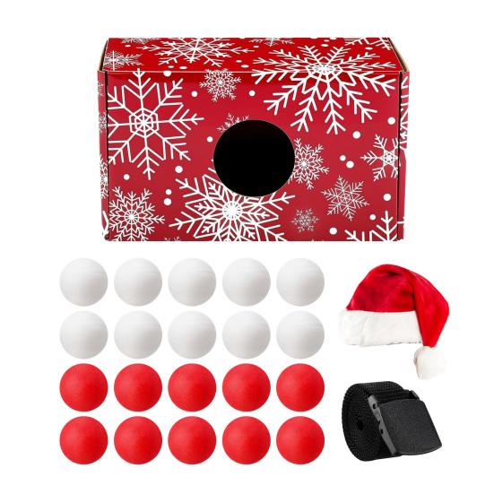 Оформленная в праздничную красную коробку, украшенную белыми снежинками, она усиливает рождественскую атмосферу.. Легко играть, просто повесьте коробку, наполните ее шариками и соревнуйтесь, кто первым вытрясет их.