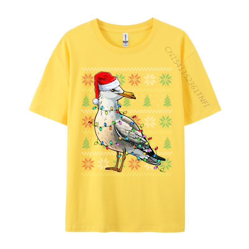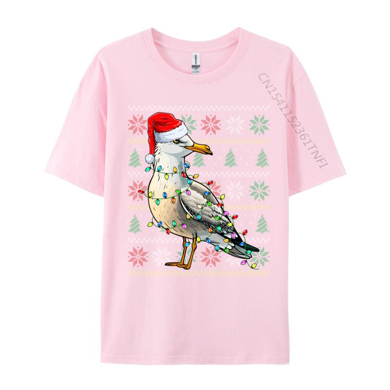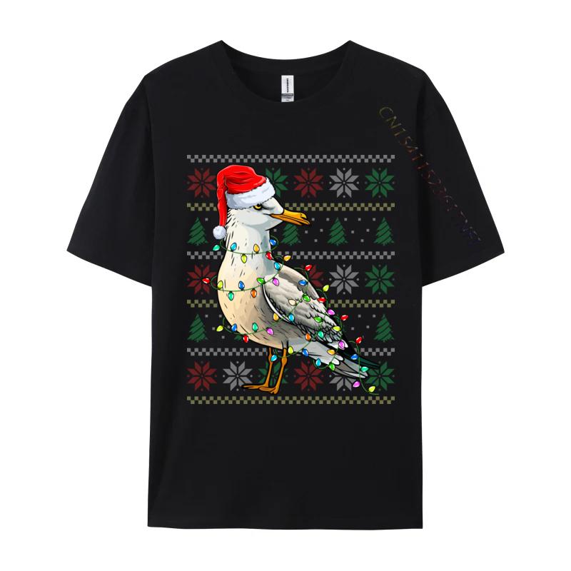 Чайка в шапке Санты Рождественские огни Рождественская футболка с чайкой Забавная мужская футболка Свитшот из чистого хлопка Оверсайз