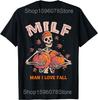 Funny MILF Man I Love Fall Skeleton Pumpkin Thankgiving T Shirts Humor Streetwear Tee Shirt Short Sleeve Unisex Loose Clothing