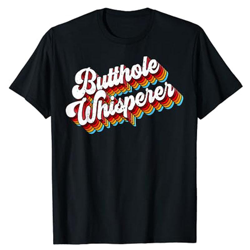 Butthole Whisperer Sarcastic Jokes Retro T-Shirt Letters Print Sayings Graphic Tee Tops Halloween Christmas Holiday Costume Gift