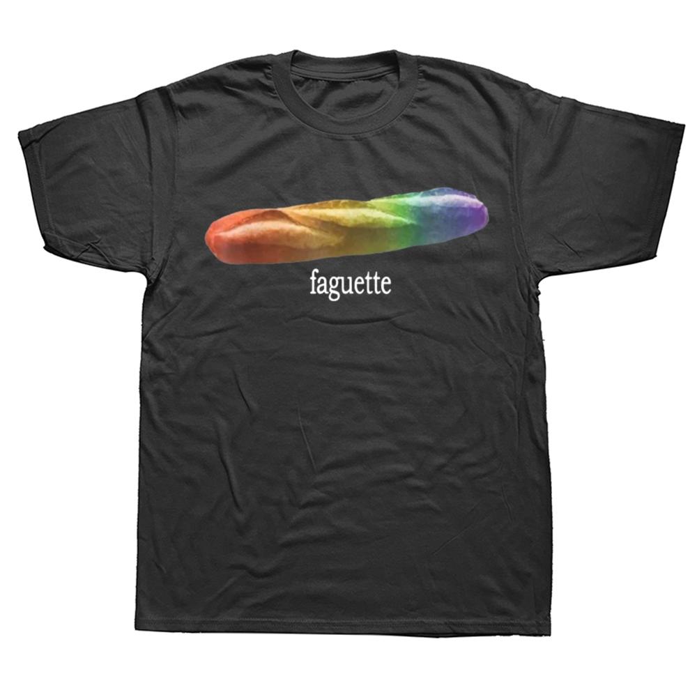 Funny Baguette Faguette LGBT Pride Month T Shirts Men Pure Cotton Humor Streetwear Tee Shirt Short Sleeve Unisex Loose Clothing