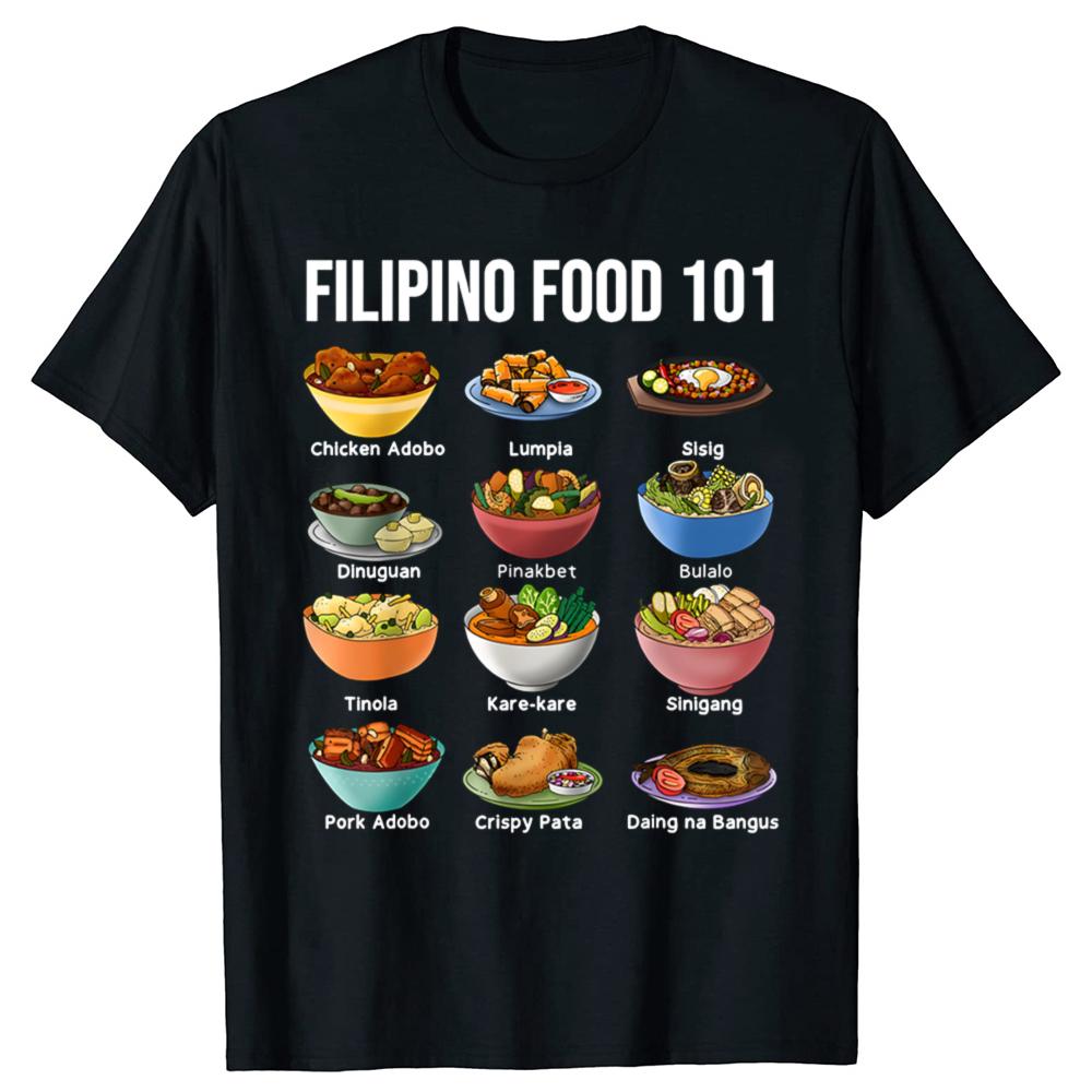 Филиппинская еда 101 Популярная еда Смешные футболки с графикой Мужские Женские Хлопок Юмор Уличная одежда Короткий рукав Унисекс Свободная одежда
