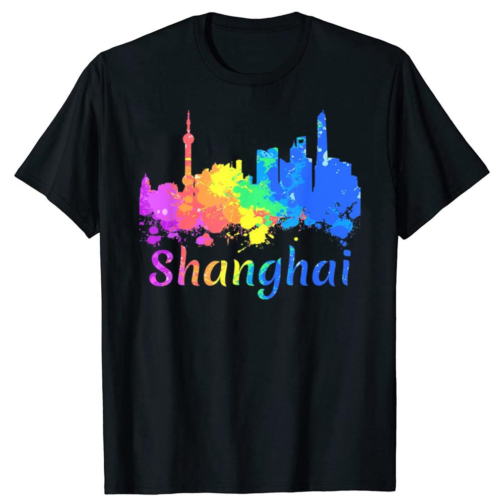 Смешные Сувениры Акварель Панорама Шанхая Китай Футболки Мужские Юмор Уличная Одежда Футболка Короткий Рукав Унисекс Свободная Одежда