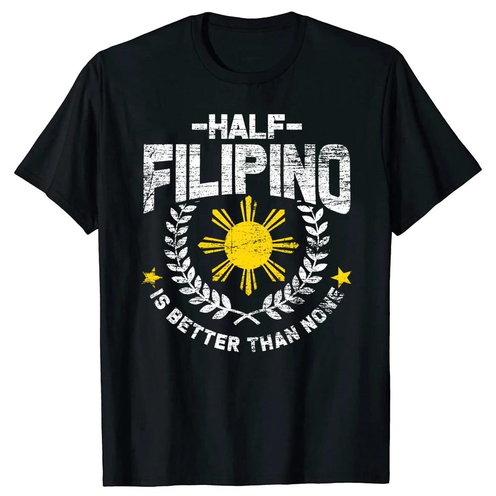 Лучше быть наполовину филиппинцем, чем никаким Филиппины Забавная хлопковая футболка с круглым вырезом Мужская повседневная футболка с коротким рукавом Топы Уличная одежда Харадзюку