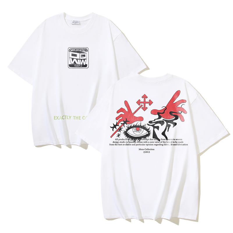 1186 Off-White 2025 Лето Новая футболка с принтом "Рука дьявола и глаз" с коротким рукавом для мужчин и женщин