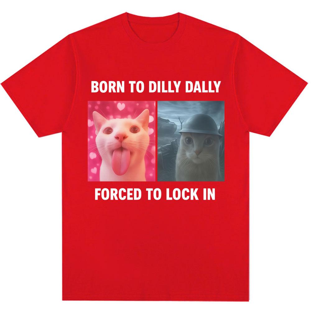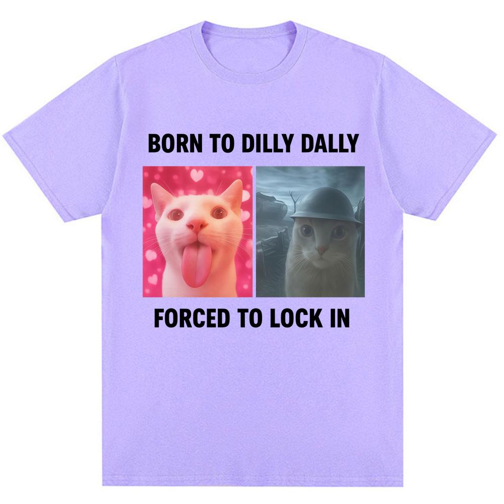 Рожден, чтобы бездельничать, вынужден запереться. Забавные футболки-мемы, юмор, графическое изображение кота, модные футболки, мужские, женские, оверсайз, хлопковая футболка