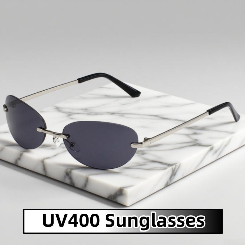 Luxury Frameless Oval Uv400 Sunglasses Fashionable Simplicity Street Photography Travel Ultraviolet-Proof Shades Glasses