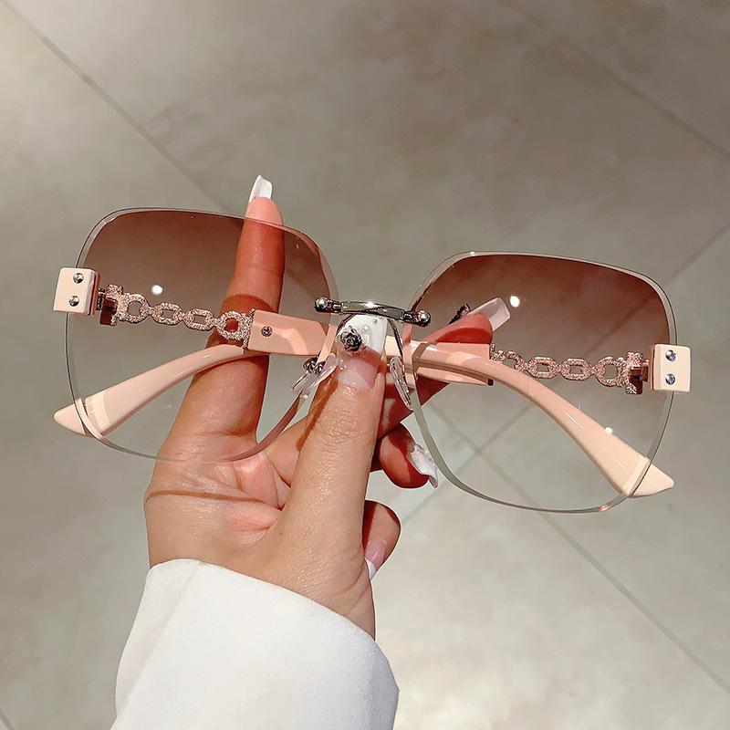 Винтажные безободковые солнцезащитные очки женские для мужчин, дизайнерский бренд класса люкс, солнцезащитные очки, панк, популярные, сексуальные, женские, металлическая цепочка, очки, УФ400