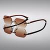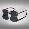 Модные безободковые солнцезащитные очки с обрезанными краями Женские высококлассные ретро очки Мужские дужки под дерево Голова леопарда Солнцезащитные очки