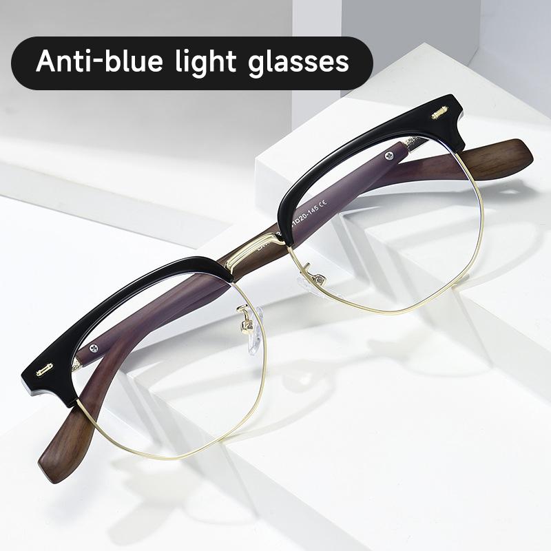 New Blue Light Blocking Glasses Men Women Wood Grain Temples Retro Eyewear Optical Spectacle Eyeglass